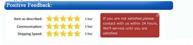 3: For Feedback: Please leave us only 5 star good feedback. it's important to our shop. for people who leave us 5 star, will get a discount from us next time.