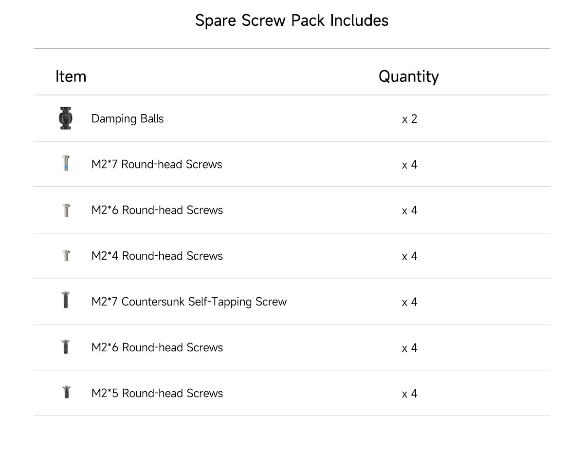 Spare Screw Pack Includes: