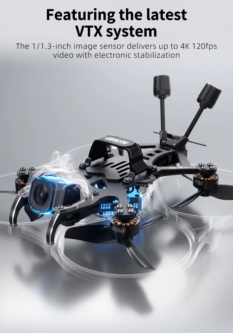 The Cinelog30 V3 features the O4 Air Unit PRO VTX, delivering superior image quality with precise color accuracy and fine detail with its advanced processing chip.