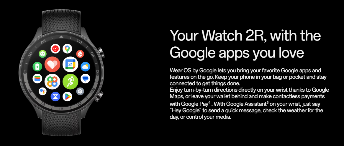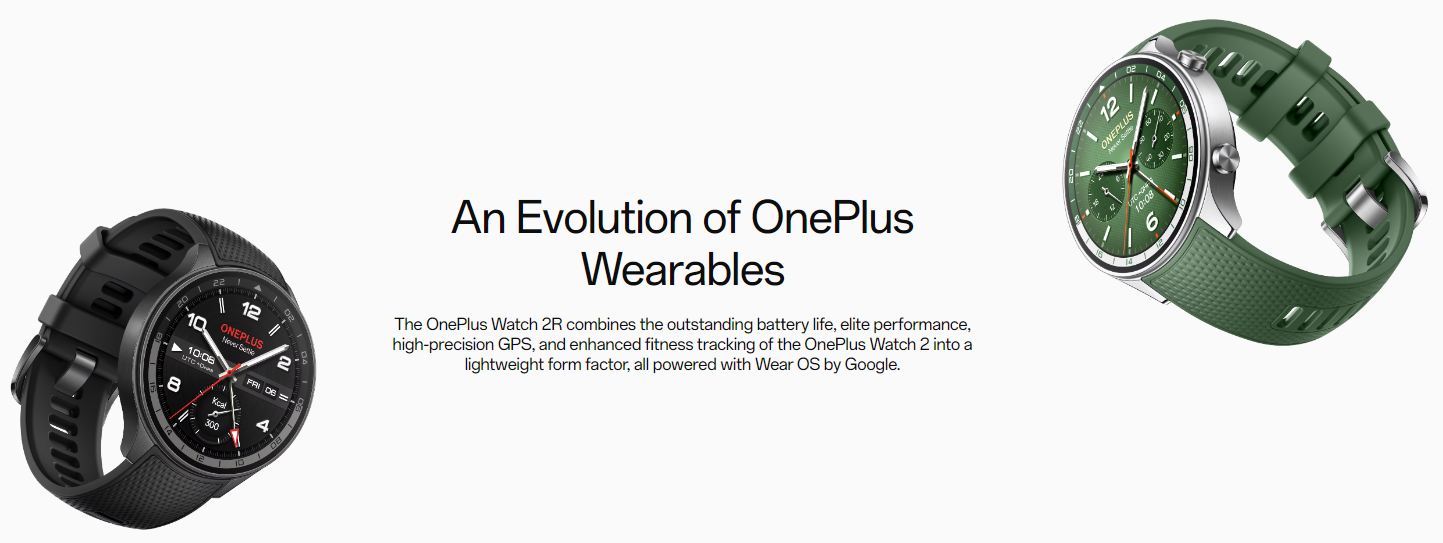 The OnePlus Watch 2R combines the outstanding battery life, elite performance, high-precision GPS, and enhanced fitness tracking of the OnePlus Watch 2 into a lightweight form factor, all powered with Wear OS by Google.