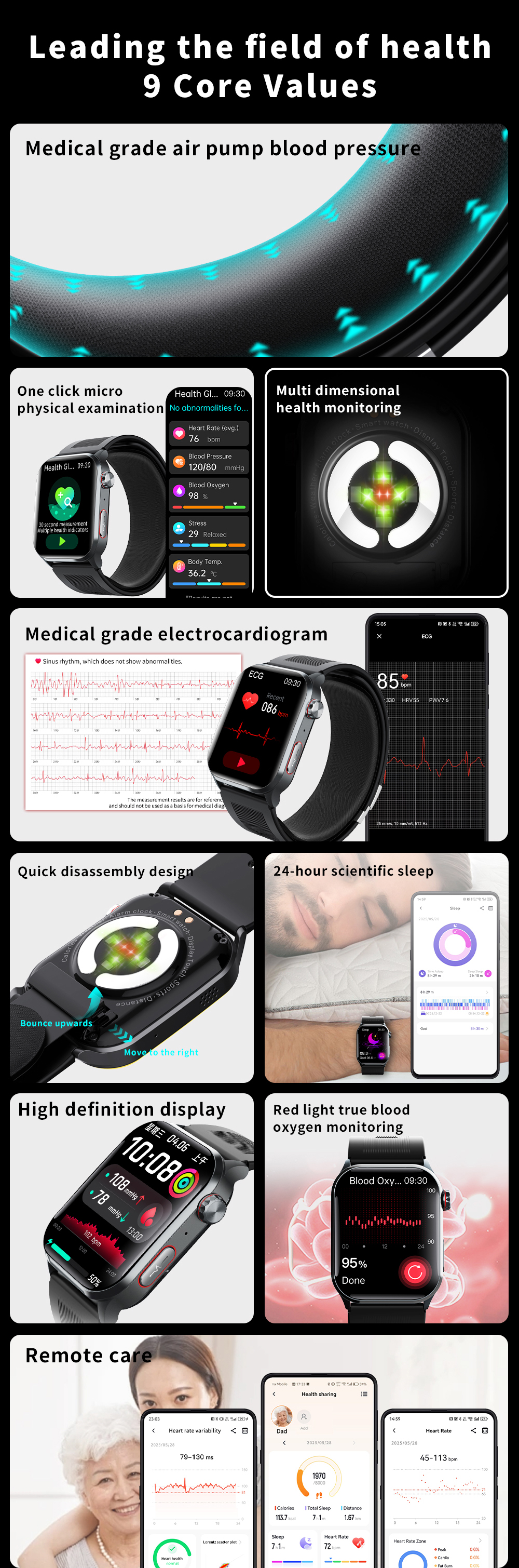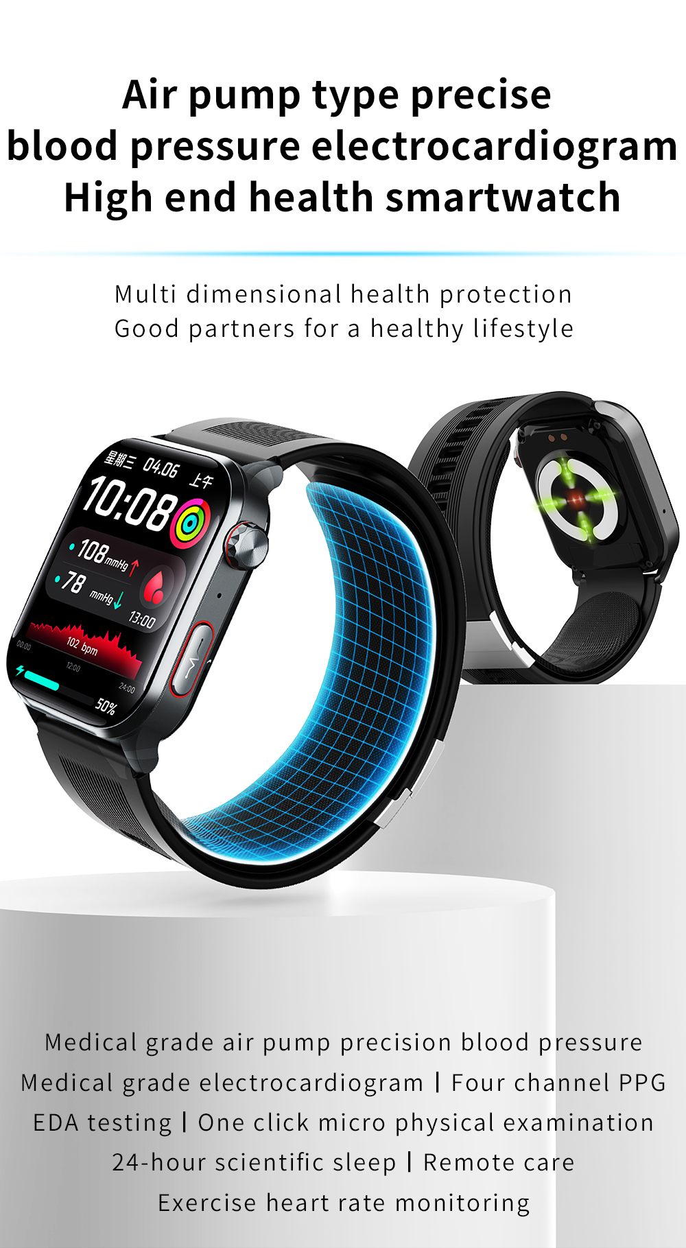 Domars Unisex Smartwatch 2.1-inch Medical-Grade ECG Smartwatch, Sleep Monitoring Bluetooth Calling Electronic Wristwatch