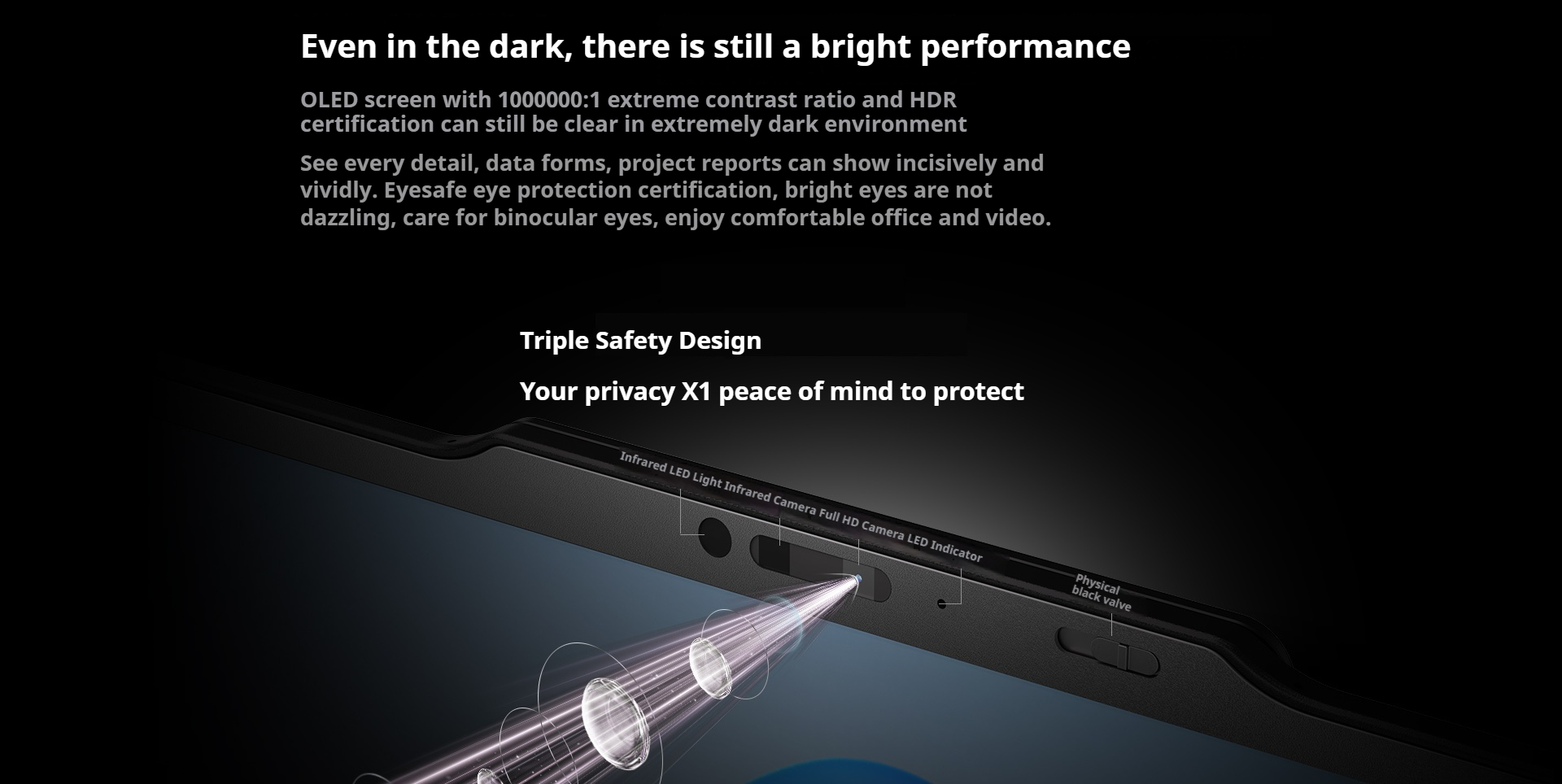 OLED screen with 1000000:1 extreme contrast ratio and HDR certification can still be clear in extremely dark environment