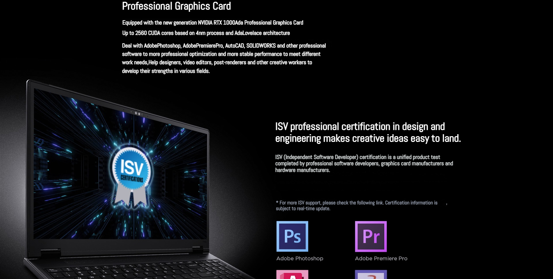 Equipped with the new generation NVIDIA RTX 1000Ada Professional Graphics Card,Up to 2560 CUDA cores based on 4nm process and AdaLovelace architecture