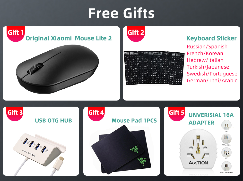 Free Gifts(Mini HUB + Mi 2Gen Wireless Mouse + Mouse Pad + Keyboard Sticker)