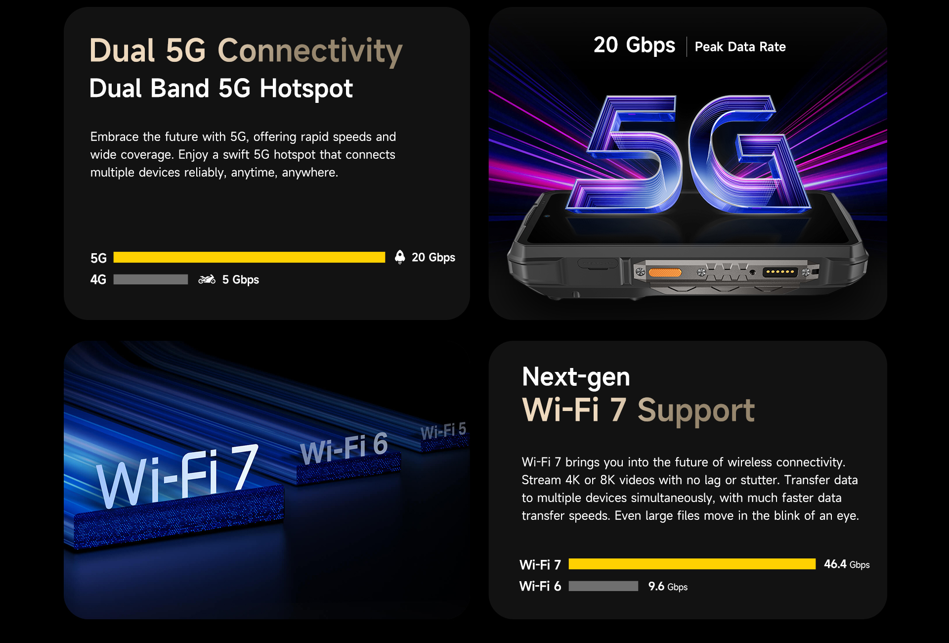 Embrace the future with 5G, offering rapid speeds and wide coverage. Enjoy a swift 5G hotspot that connects multiple devices reliably, anytime, anywhere.