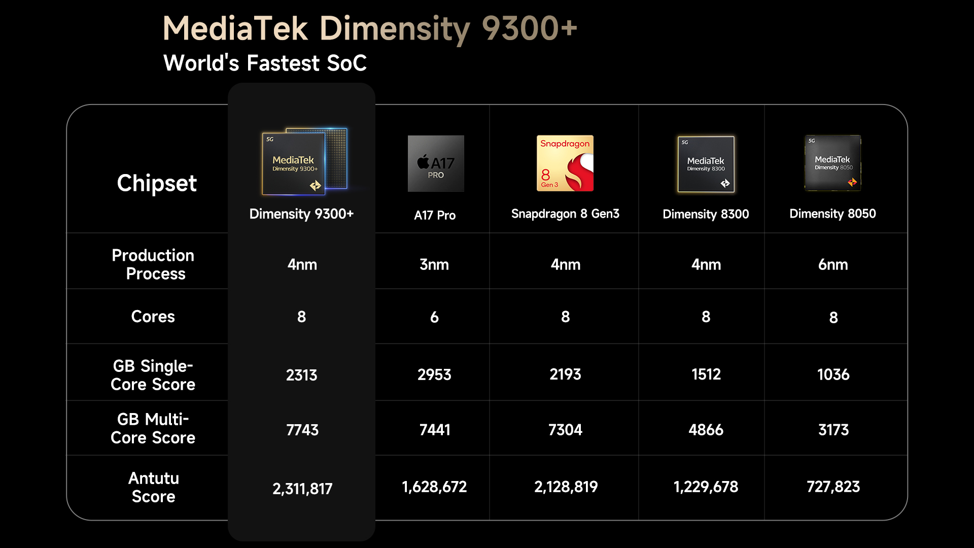 ● MediaTek Dimensity 9300+ | MediaTek NPU 790 |