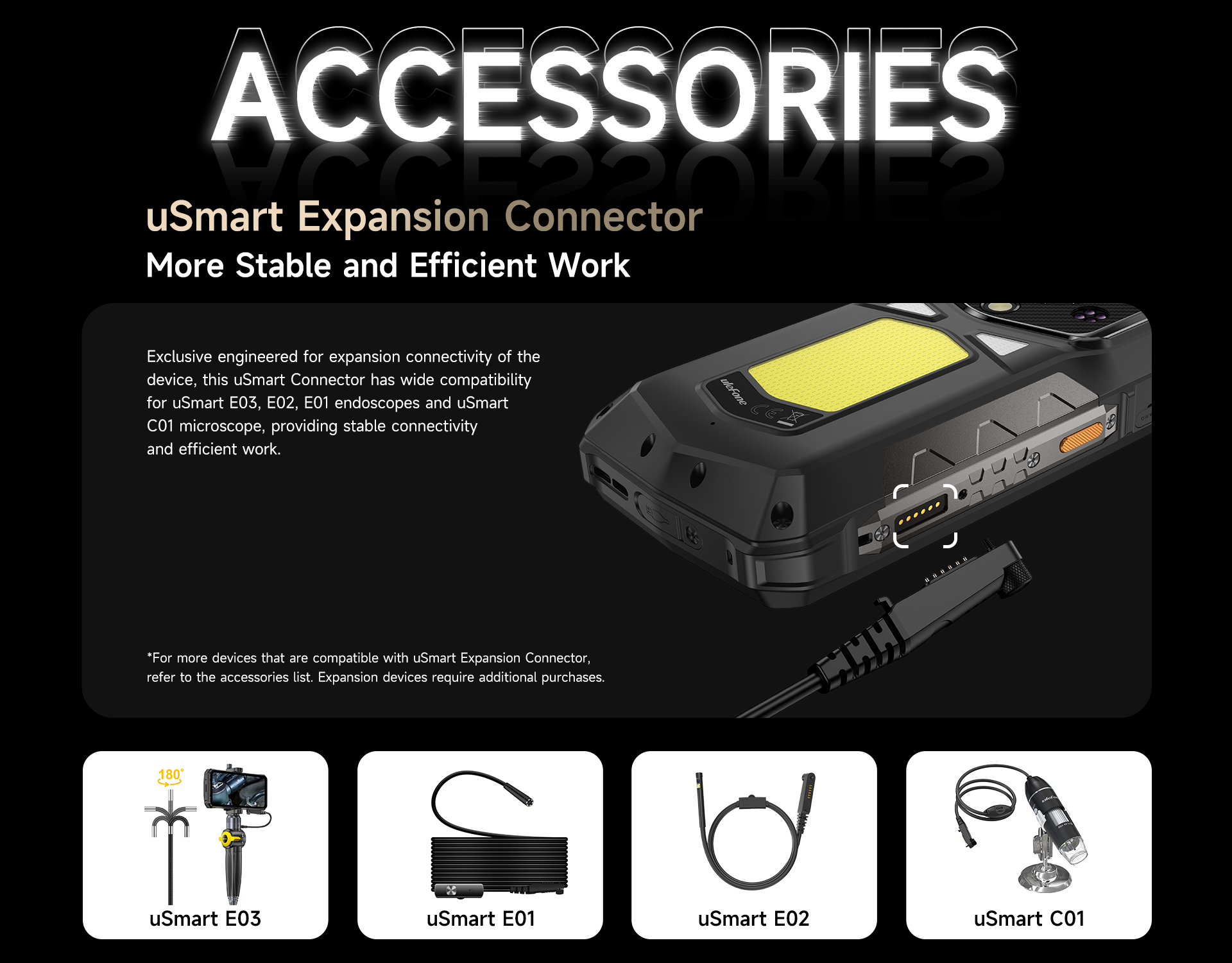 Exclusive engineered for expansion connectivity of the device, this uSmart Connector has wide compatibility for uSmart E03, E02, E01 endoscopes and uSmart C01 microscope, providing stable connectivity and efficient work.