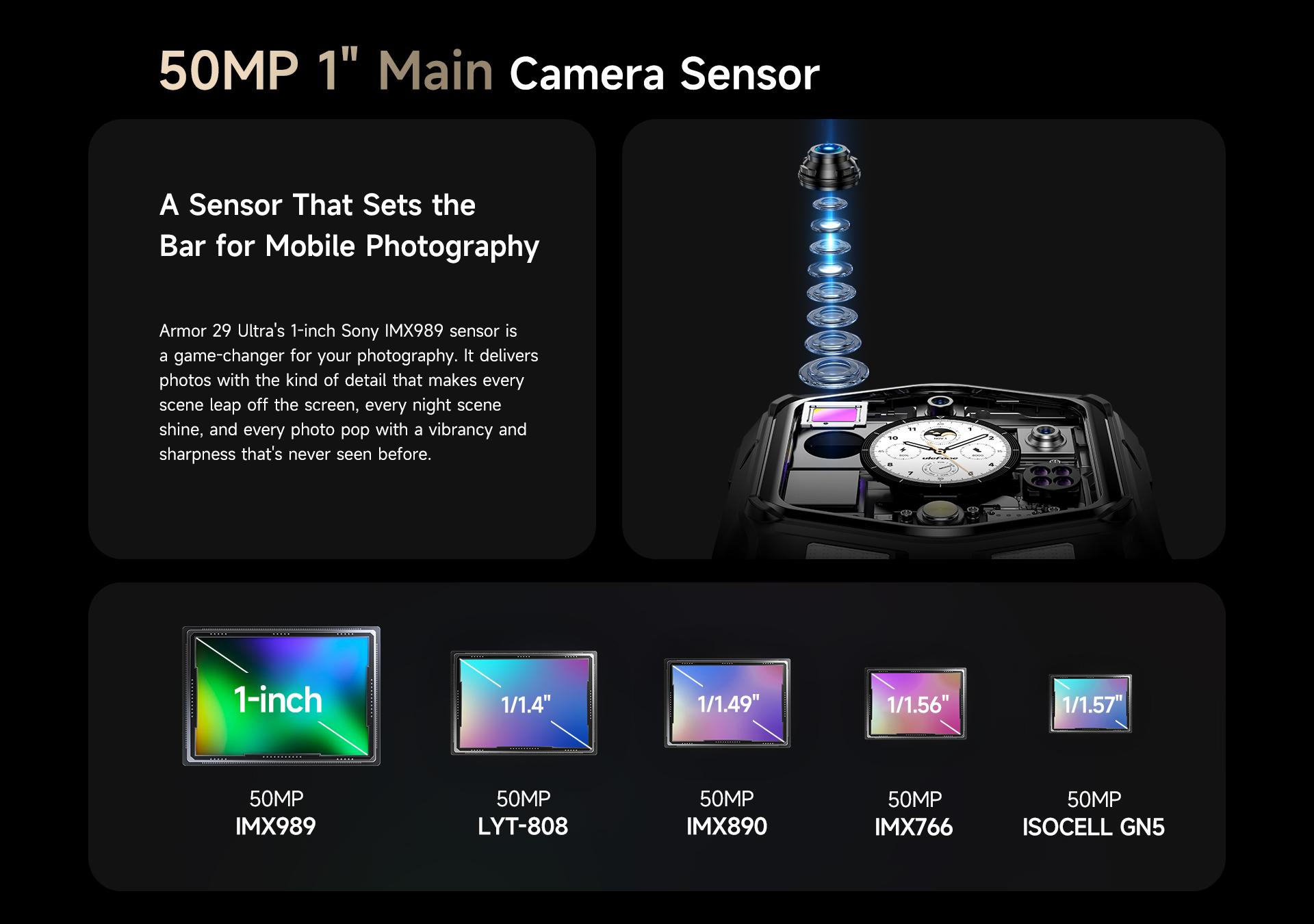 Armor 29 Ultra's 1-inch Sony IMX989 sensor is a game-changer for your photography. It delivers photos with the kind of detail that makes every scene leap off the screen, every night scene shine, and every photo pop with a vibrancy and sharpness that's never seen before.