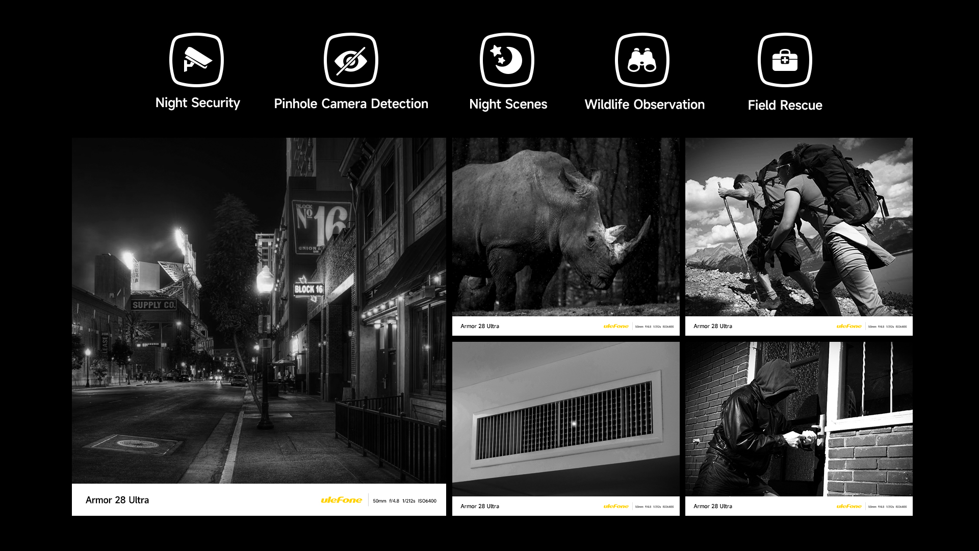 Unveil the power of the 64MP Night Vision Camera, where the OMNIVISION OV64B sensor joins forces with Ulefone's cutting-edge NightElf Ultra 3.0 algorithm. Assisted by the upgrade to 4 infrared LEDs, your nights become illuminated with much more clarity and intricate detail, doubling the brightness and image quality when shooting farther compared to the previous 2 LEDs.