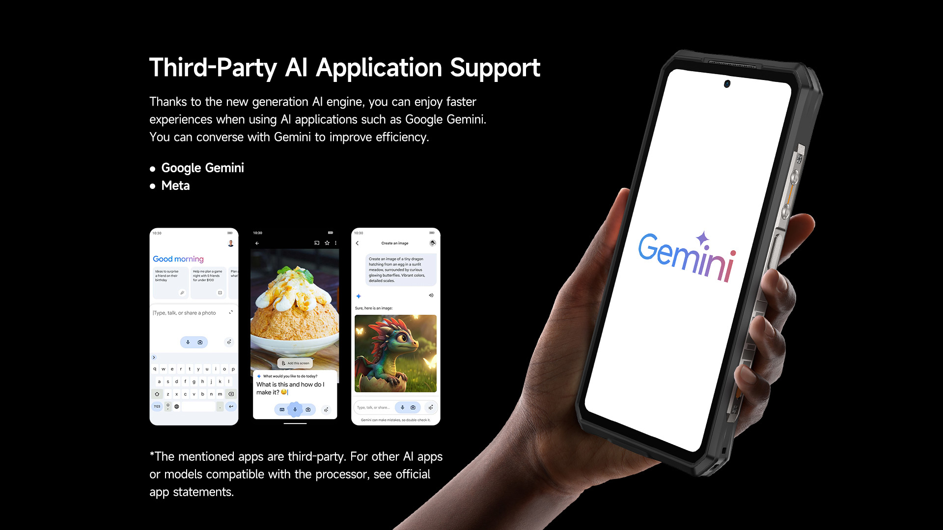 Thanks to the new generation AI engine, you can enjoy faster experiences when using AI applications such as Google Gemini. You can converse with Gemini to improve efficiency.