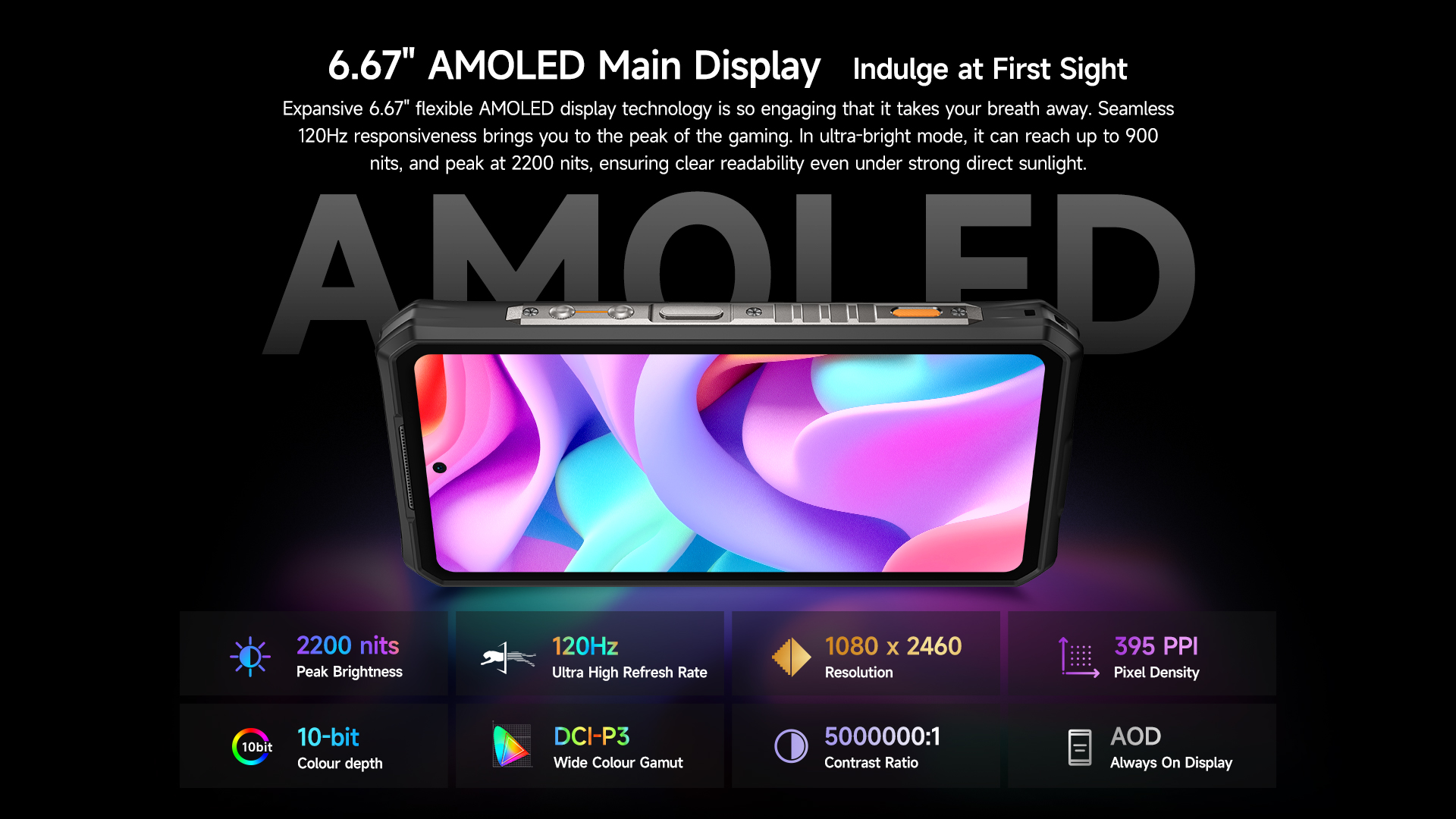 Expansive 6.67" flexible AMOLED display technology is so engaging that it takes your breath away. Seamless 120Hz responsiveness brings you to the peak of the gaming. In ultra-bright mode, it can reach up to 900 nits, and peak at 2200 nits, ensuring clear readability even under strong direct sunlight.