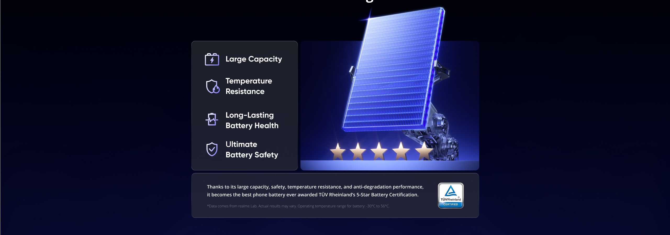 * Charging data is from realme Lab, the actual data is affected by the testing environment.