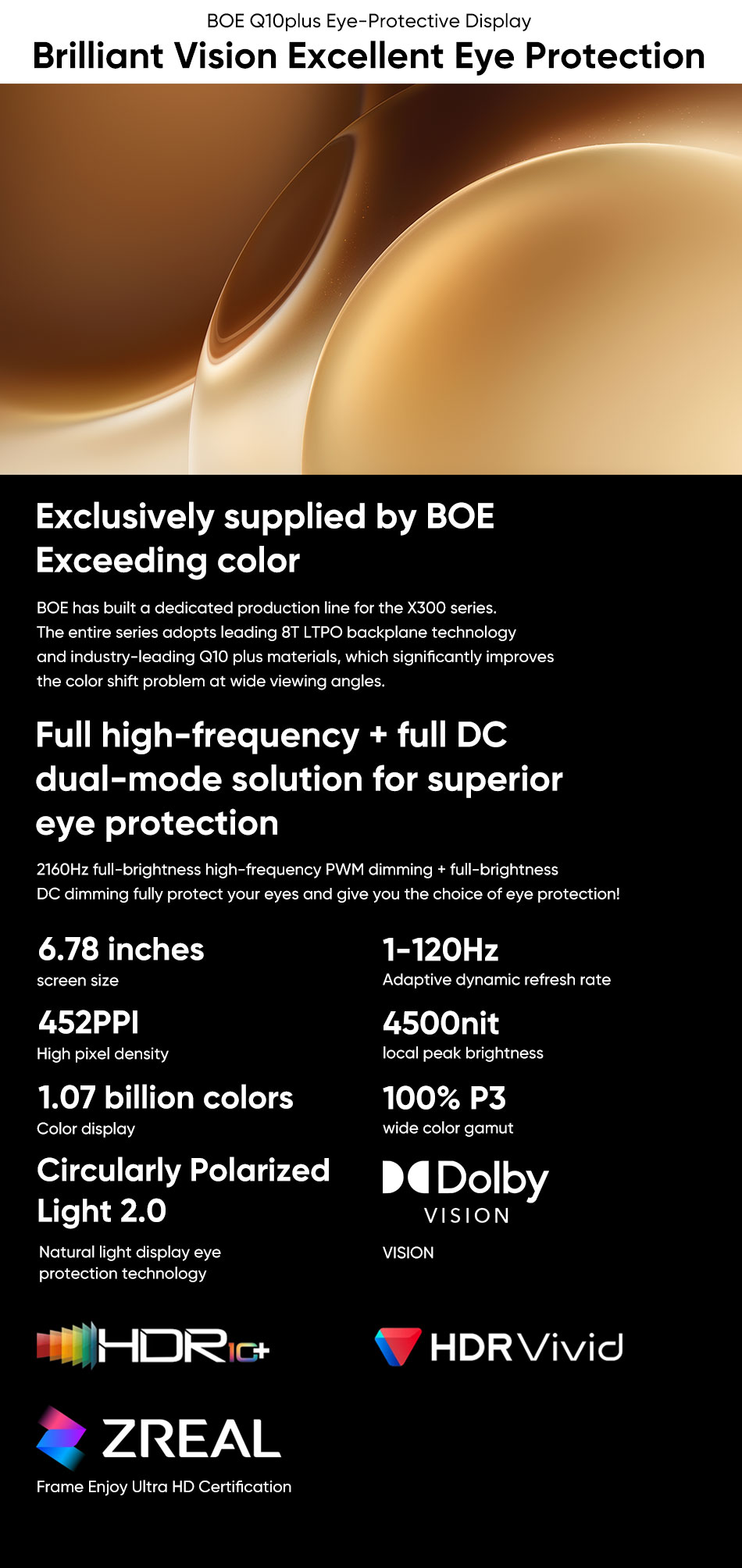 Display Size : 6.78 inches; resolution: 2800 × 1260 pixels (~452 ppi density); 120Hz LTPO AMOLED Screen